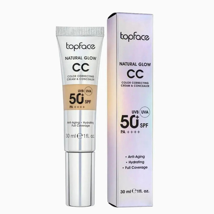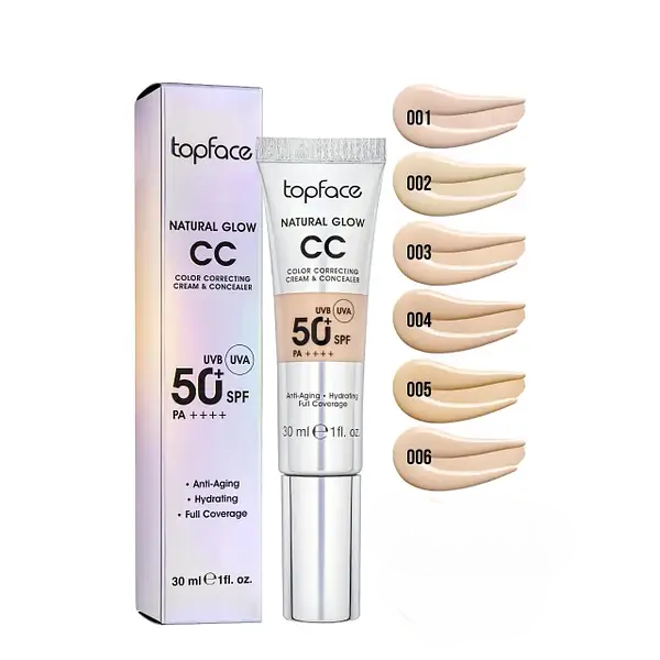 سی سی کرم تاپ فیس گیاهی و ضد حساسیت، SPF 50، محافظت در برابر اشعه UVA و UVB,جایگزین مناسب کانسیلر،ضد چروک، آبرسان قوی و پوشش عالی